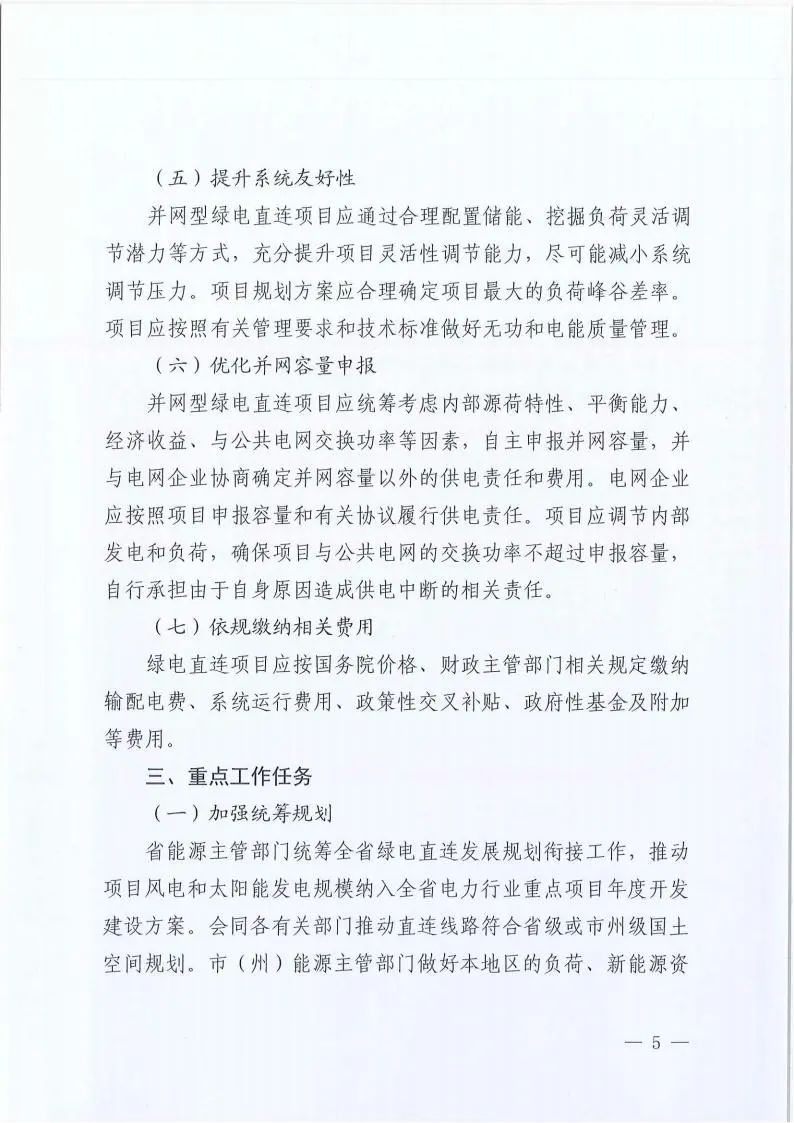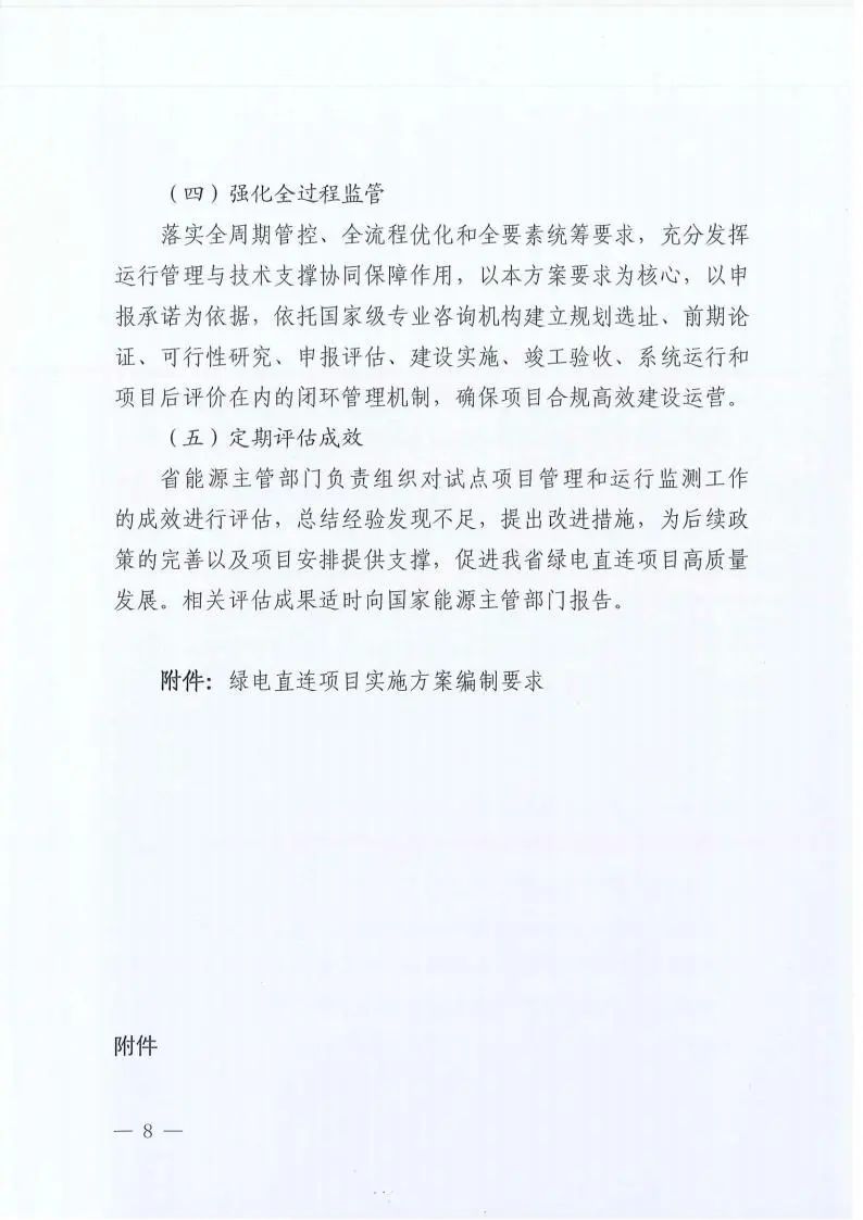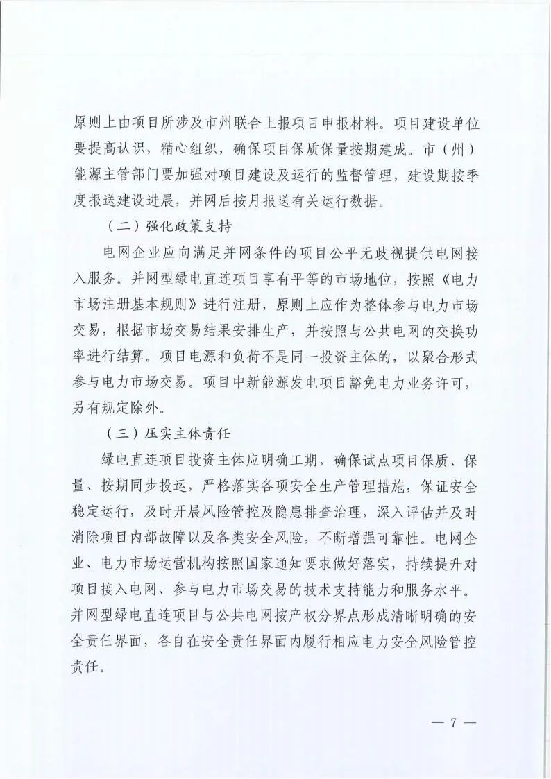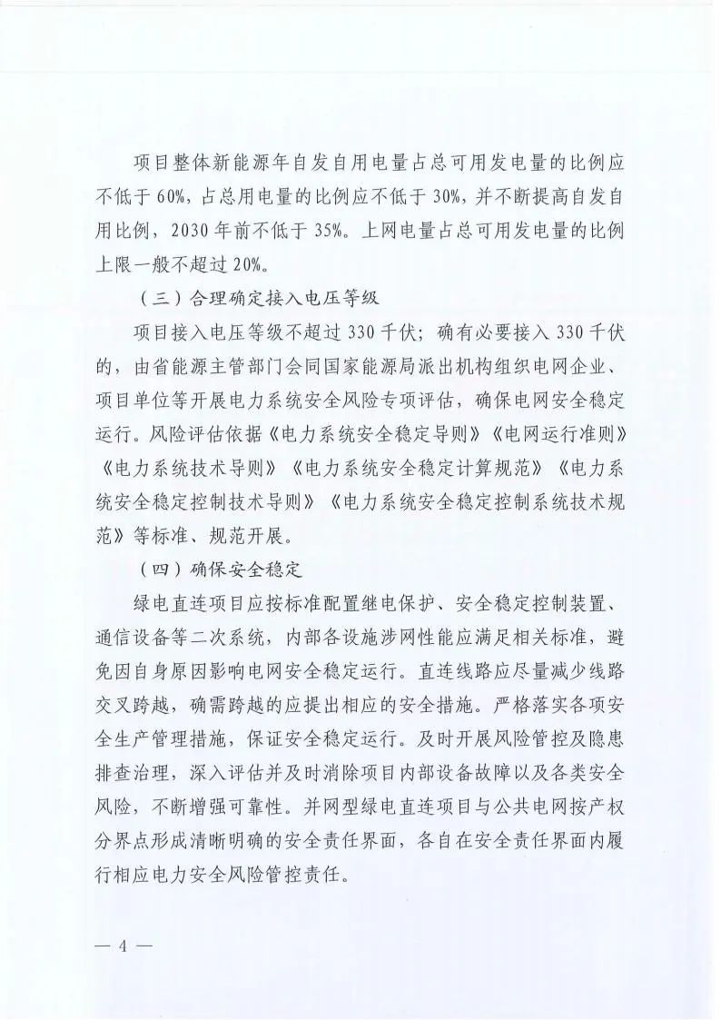 7月16日,青海省能源局发布关于印发《青海省绿电直连实施方案》的通知。文件明确,有序推进以下4种类型的绿电直连项目: 1.新增负荷可配套建设新能源项目。 2.存量负荷在已有燃煤燃气自备电厂足额清缴可再生能源发展基金的前提下开展绿电直连,通过压减自备电厂出力,实现清洁能源替代。 3.有降碳刚性需求的出口外向型企业利用周边新能源资源探索开展存量负荷绿电直连。 4.尚未开展电网接入工程建设或因新能源消纳受限等原因无法并网的新能源项目,在履行相应变更手续后开展绿电直连。 项目整体新能源年自发自用电量占总可用发电量的比例应不低于60%,占总用电量的比例应不低于30%,并不断提高自发自用比例,2030年前不低于35%。上网电量占总可用发电量的比例上限一般不超过20%。 文件提出,强化源荷适配。绿电直连项目应实现内部资源协同优化。并网型项目应按照“以荷定源”原则科学确定新能源电源类型和装机规模。现货市场未连续运行期间,不允许向公共电网反送。现货市场连续运行后,可采取整体自发自用为主,余电上网为辅的模式运行。 此外,政策解读中指出,《方案》在承接国家政策规定的适用范围基础上,充分结合青海省实际,不设直连线路距离限制,为绿电直连可持续发展留足空间,激活市场、吸引投资。 原文件如下: 《青海省绿电直连实施方案》政策解读 现将《青海省绿电直连实施方案》(以下简称《实施方案》)相关政策解读如下: 一、制定背景 绿电直连项目是新能源融合发展模式的重要创新,是丰富新型电力系统形态的重要探索,在能源绿色低碳转型新形势下,为满足新能源就近消纳和用户绿电消费需求提供更多选择。国家发展改革委、国家能源局于5月21日印发《关于有序推动绿电直连发展有关事项的通知》(发改能源〔2025〕650号),要求省级能源主管部门细化措施,引导项目科学合理评估需求,做好项目管理和运行监测工作,推动绿电直连模式有序发展。根据省政府工作安排,在深入开展调研分析、学习借鉴外省经验、广泛征求意见建议的基础上,编制完成了《实施方案》。 二、主要考虑 《实施方案》编制过程中,注重全面贯彻落实国家部署要求,坚持立足省情实际,充分考虑我省新能源产业发展和全社会日益增长的绿色用能需要,分层分类精准施策,力求实用管用、便于落实,重点考虑和把握了以下几个方面:一是坚持问题导向。将绿电直连作为解决新能源消纳问题和提高能源配置效率的重要抓手,聚焦新能源“盘活存量、优化增量”,支持建设离网型、并网型两种模式,明确新能源自发自用和上网电量比例,引导新能源项目尽可能就近就地消纳利用,奠定项目“绿”的基础。二是全方位支持。覆盖全省各产业领域,有序推进四种类型的绿电直连项目,为重点企业(尤其是出口外向型)提供可验证的绿电供应渠道,解决绿电溯源与高碳转型痛点,响应传统和新兴高载能行业增绿减碳的用能诉求,协同推进产业绿色转型发展和构建绿色电力消费体系。三是探索创新突破。在承接国家政策规定的适用范围基础上,充分结合我省实际,不设直连线路距离限制,为绿电直连可持续发展留足空间,激活市场、吸引投资。 三、主要内容 《实施方案》共四个部分。 第一部分为“项目类型及适用范围”。主要明确新增负荷、拥有自备电厂的存量负荷、有刚性需求的出口型企业、尚未开展电网接入工程建设或因新能源消纳受限等原因无法并网的新能源项目可开展绿电直连。 第二部分为“技术要求”。从明晰投资主体、强化源荷适配、合理确定接入电压等级、确保安全稳定、提升系统友好性、优化并网容量申报、依规缴纳相关费用等方面提出要求。 第三部分为“重点工作任务”。从加强统筹规划、强化项目储备、建设示范项目、规范项目建设等方面提出任务和措施。 第四部分为“工作组织实施”。提出加强组织实施、强化政策支持、压实主体责任、强化全过程监管、定期评估成效等措施,确保方案落地实施,为做好绿电直连工作提供保障和支撑。