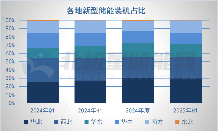 7月31日上午,国家能源局新闻发布会上介绍了2025上半年新型储能最新进展。数据显示,2025年上半年,全国新型储能装机达到94.91GW/222GWh,较2024年底增长约29%/32%。 根据国家能源局历次披露数据,2025年上半年我国新型储能新增装机约21GW/54GWh,相较于去年同期的13GW/32GWh同比增长超62%。 (数据来源:国家能源局 制图:北极星储能网) (数据来源:国家能源局 制图:北极星储能网) 另外值得注意的是,从最新数据来看,南方地区增速较快,已投运新型储能装机占全国15.4%,已经从2024年底的全国第四位提升至第三位。 据电网公司初步统计,上半年全国新型储能等效利用小时数约570小时,同比增加超过100小时。江苏、山东、云南先后开展全省新型储能电站用电高峰期间集中调用,最大放电功率分别达714万千瓦、804万千瓦、474万千瓦,调用同时率达到95%以上,发挥了重要的顶峰保供作用。 另外,国家能源局表示,2025年将进一步强化顶层设计,扎实开展“十五五”新型储能实施方案研究编制,做好新型储能技术创新攻关和产业可持续发展的统筹工作。 《中国新型储能发展报告(2025)》 能源节约和科技装备司副司长边广琦:近年来,我国新型储能快速发展,在新型电力系统中作用日益凸显,有力促进新能源开发消纳,提高电力系统安全稳定运行水平。为加强行业发展引导,服务“双碳”战略实施,我局于近期组织编制《中国新型储能发展报告(2025)》,已经在现场提供给各位记者朋友,发布会后将在国家能源局门户网站公开。下面,我作一下简要介绍。 《报告》主要包括三部分内容: 一是从政策体系、装机规模、应用场景、技术创新、产业发展、标准体系等方面,系统总结2024年国内外新型储能发展情况。 二是从科学谋划发展、健全市场机制、加大技术攻关、促进作用发挥和巩固产业优势等方面提出2025年新型储能行业发展展望。三是系统梳理2021-2024年新型储能主要政策、技术创新和示范工程等大事记情况。 总体来看,“十四五”以来,我国新型储能发展政策的“四梁八柱”初步构建,新型储能产业稳步发展。截至2024年底,已建成投运新型储能7376万千瓦/1.68亿千瓦时,装机规模已占全球总装机比例超过40%。新型储能技术路线“百花齐放”,涵盖全球工程应用的主要技术路线,调度运用水平稳步提高,有力支撑新型电力系统建设。 一是我国新型储能发展的政策体系持续完善,陆续出台《关于促进新型储能并网和调度运用的通知》《加快构建新型电力系统行动方案(2024-2027年)》《关于支持电力领域新型经营主体创新发展的指导意见》等多项政策文件,健全电力市场机制,引导科学发展。 二是新型储能应用效果逐步显现,2024年全年新型储能调用情况相较2023年大幅提升,浙江、江苏、重庆、新疆等多省(区)年均等效利用小时数达到1000小时以上,成为促进新能源开发消纳的重要手段。迎峰度夏期间,新型储能充分发挥“超级充电宝”功效,为顶峰时段电力保供贡献了关键力量。 三是技术创新实践迈出坚实步伐,2024年国家能源局发布56个新型储能试点项目,涵盖十余种技术路线,多个试点项目为国内首次工程应用,总体呈现多元化发展态势,有力促进新型储能关键技术和装备实现突破。与此同时,12个新型储能项目入选为第四批能源领域首台(套)重大技术装备的依托工程,为首台(套)重大技术装备落地转化提供了应用场景。 四是标准体系持续健全,2024年超过20项电化学储能标准发布实施,多项标准立项,覆盖规划设计、接入电网、运行控制、检修试验、后评价等多个环节,我国新型储能标准体系建设水平进一步提升。 2025年,是“十四五”规划收官之年,也是“十五五”规划谋局开篇之年,更是新型储能技术创新不断突破、管理体系逐渐完善、产业迈向高质量发展的关键一年。国家能源局将认真贯彻落实党中央、国务院决策部署,进一步强化顶层设计,扎实开展“十五五”新型储能实施方案研究编制,做好新型储能技术创新攻关和产业可持续发展的统筹工作,为实现“十五五”良好开局打牢基础。 对于今年上半年新型储能进展和成效,能源节约和科技装备司副司长边广琦表示,当前,随着新能源快速发展,系统调峰、电力保供压力不断增大,发展新型储能成为构建新型电力系统的客观需要。 2025年上半年,新型储能保持平稳较快发展态势。从装机规模来看,全国新型储能装机规模达到9491万千瓦/2.22亿千瓦时,较2024年底增长约29%。其中,内蒙古、新疆装机规模超过1000万千瓦,山东、江苏、宁夏装机规模超过500万千瓦。河北、浙江、云南、甘肃、广东、安徽、广西、山西、湖南、河南、湖北、青海、贵州等13省区装机规模超过200万千瓦。 分区域来看,华北、西北、南方地区是上半年新型储能主要增长区,占全国新增装机80%以上。其中,华北、西北地区已投运新型储能装机分别占全国29.7%、25.7%,占比与2024年底相比基本保持稳定。南方地区增速较快,已投运新型储能装机占全国15.4%,与2024年底相比增加3个百分点,主要原因是广西、云南等水电占比较高、调节资源相对充裕的省份,由于新能源快速发展,调节能力逐步趋紧,新型储能发展需求不断增加。此外,华东、华中、东北地区已投运新型储能装机分别占全国16.6%、12.2%、0.4%。 从调用情况来看,据电网公司初步统计,上半年全国新型储能等效利用小时数约570小时,同比增加