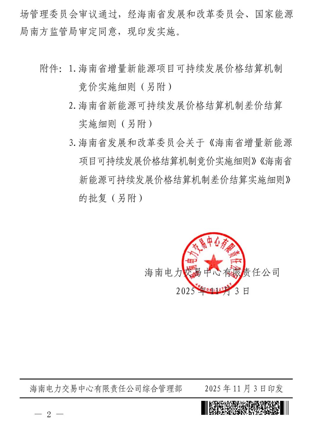 11月3日,海南电力交易中心印发海南省新能源上网电价市场化改革配套细则的通知,实施细则提到,适用于2025年6月1日及以后投产的且未纳入机制执行范围的新能源项目(风电、太阳能发电项目,下同)。选择全部自发自用模式的大型工商业分布式光伏项目,不纳入机制电价竞价主体范围。2025年6月1日前已明确电价的光热项目、竞争性配置的海上风电项目,不纳入机制电价竞价主体范围。详情如下::