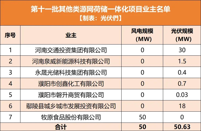 日前,河南发改委发布《关于实施第十一批源网荷储一体化项目的通知》。本次共49个项目纳入实施范围,其中,工业企业类34个、农村地区类3个、项目信息变更及其他类12个。梳理得出,工业企业类、农村地区类、其他类三类源网荷储项目,风电规模301.15MW,光伏规模150.28MW,风、光合计451.43MW。业主如下:根据此前梳理,河南省前十批源网荷储项目规模7.237GW,加上第十一批451.43MW,累计7.688GW。原文如下::