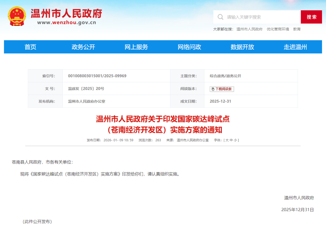 近日,浙江省温州市人民政府发布《关于印发国家碳达峰试点(苍南经济开发区)实施方案的通知》。 《通知》指出,试点定位为:以绿电溯源认证为支撑的零碳标杆园区。 主要目标为:到2030年,产业转型提质发展格局基本形成,循环经济产业迈上新台阶,绿色低碳制度创新取得明显成效,为全国同类园区提供可复制可推广的绿色低碳转型经验做法。其中,非化石能源装机(可再生能源装机)到2030年到达到986.6(626.6)万千瓦。 主要任务包括,推进风电倍增发展。积极稳妥推进苍南海上风电项目规模化发展,加快推进苍南1号海上风电二期项目、2号海上风电二期项目、3号海上风电项目、5号海上风电项目、6号海上风电项目及苍南风电示范项目,争取推进Z5深远海风电项目,推进漂浮式风电试点示范,力争到2030年,苍南县海上风电装机突破560万千瓦,实现海上风电跨越式发展。 探索海上风电基地发展新模式,创新“海洋能+储能+制氢+海洋牧场+陆上产业基地”的一体化协同开发方式。稳步开展老旧风电场改造升级,推进苍南霞关风电场改造升级及新增智能调控系统项目与苍南皇帝平31MW风电场改造升级项目。 推进源网荷储融合互动。在绿能小镇、北关岛等区域推进“源网荷储”等各要素深度融合,探索实施分布式零碳电厂、新能源微电网、微能网等示范工程,有力支撑智能灵活调节、安全保障有力、供需实时互动的新型电力系统建设。推进风电、光伏、核电、生物质发电以及海上能源岛等项目与高载能项目协同布局。 培育综合能源服务。积极推进园区级虚拟电厂建设,全面挖掘工业生产柔性可调节资源,推动园区内及周边工业可控设备负荷、新型储能电站、充换电设施、分布式光伏、分散式风电等资源聚合应用。 构建风电全产业链生态。加快绿能小镇、远景苍南零碳产业基地的建设步伐,形成涵盖风机叶片制造、塔筒制造、智能化电气设备研发制造、风机整机和配套设备制造、大型设备物流、研发创新等在内的风电全产业链,建成具有国内国际影响力的海上风电装备制造基地。谋划具备海上风电基础模块制造、风机及基础总装、施工建设、运维服务、研发试验等功能的风电枢纽,推动海上风电产业向高效率、高技术和高价值方向发展,促进海上风电可持续发展。加强海上风电等配套服务设施建设,推进华能温州海风科创基地建设,形成集海上风电科技创新、海风培训等功能为一体的综合性多功能服务基地,有效保障海上风电资源利用。 在重点工程方面,试点建设重点工程项目共50个,总投资为2059亿元。其中,涉及5个风电项目,总投资591亿元。风电部分项目相关项目见下: 海陆风电建设。推进海上风电项目建设,建设国内一流的海上风力发电应用示范基地。创新“海洋能+储能+海洋牧场+陆上产业基地”的一体化协同开发方式。推进陆上分散式风电的开发工程,在高负荷工业园区部署分散式风电,就近消纳。 详情见下: 国家碳达峰试点(苍南经济开发区)实施方案 为深入贯彻党中央、国务院关于碳达峰碳中和重大战略决策,全面落实国家发展改革委《国家碳达峰试点建设方案》(发改环资〔2023〕1409号)要求,有力有序推进碳达峰试点园区建设,结合工作实际,制定本实施方案。 一、建设目标 (一)总体思路 以习近平新时代中国特色社会主义思想为指导,深入贯彻党的二十大和二十届二中、三中、四中全会精神,全面贯彻习近平经济思想、生态文明思想,完整、准确、全面贯彻新发展理念,加快构建新发展格局,着力推动高质量发展,依托区域零碳能源资源禀赋和产业基础,按照为全国东部地区零碳能源资源丰富、产业需加快提质发展的园区探索碳达峰和零碳发展“苍南模式”的试点思路,着力能源零碳,推动零碳能源开发利用,探索零碳能源溯源认证机制,推进能源清洁高效利用,提升园区“绿色竞争力”;着力产业低碳,“以绿引绿”“以绿制绿”,探索零碳能源开发与产业协同布局机制,创新央地合作机制,做大清洁能源产业,做优再生纺织品产业,推动传统产业转型发展,完善绿色低碳科技创新体系;着力制度控碳,建立企业和项目碳管理机制,构建典型产品低碳标准、碳足迹核算认证体系,探索建设园区智慧控碳管理体系,全力打造零碳标杆园区、碳循环典范园区、碳管理样板园区。 (二)试点定位 以绿电溯源认证为支撑的零碳标杆园区。依托园区周边丰富的海上风电、光伏、核电等绿色电力资源,充分发挥园区产业高电气化率的优势条件,探索应用精细化电碳因子,率先探索开展绿色电力溯源认证,确保绿色能源从生产到消费的全过程可追溯、可验证,“以绿引绿”推进清洁能源基地与高载能行业协同,创新央地合作机制,推动海上清洁能源岛建设,做大清洁能源产业,实现“以绿制绿”,打造形成具有全球认可度、全国影响力的零碳标杆园区。 以再生纺织品产业为重点的碳循环典范园区。依托全国最大的再生棉回收和加工基地的优势条件,推动园区再生纺织品产业做优做强,推进纺织品产品碳足迹标识认证国家试点,最大限度推进产业废弃物资源化利用,大幅提升园区资源产出率,打造形成以废纺再生为主线、协同推进各类废弃物循环利用的碳循环典范园区。以制度集成改革为核心的碳管理样板园区。依托园区高比例电气化水平优势,聚焦碳要素管理,集成园区各类碳排放数据